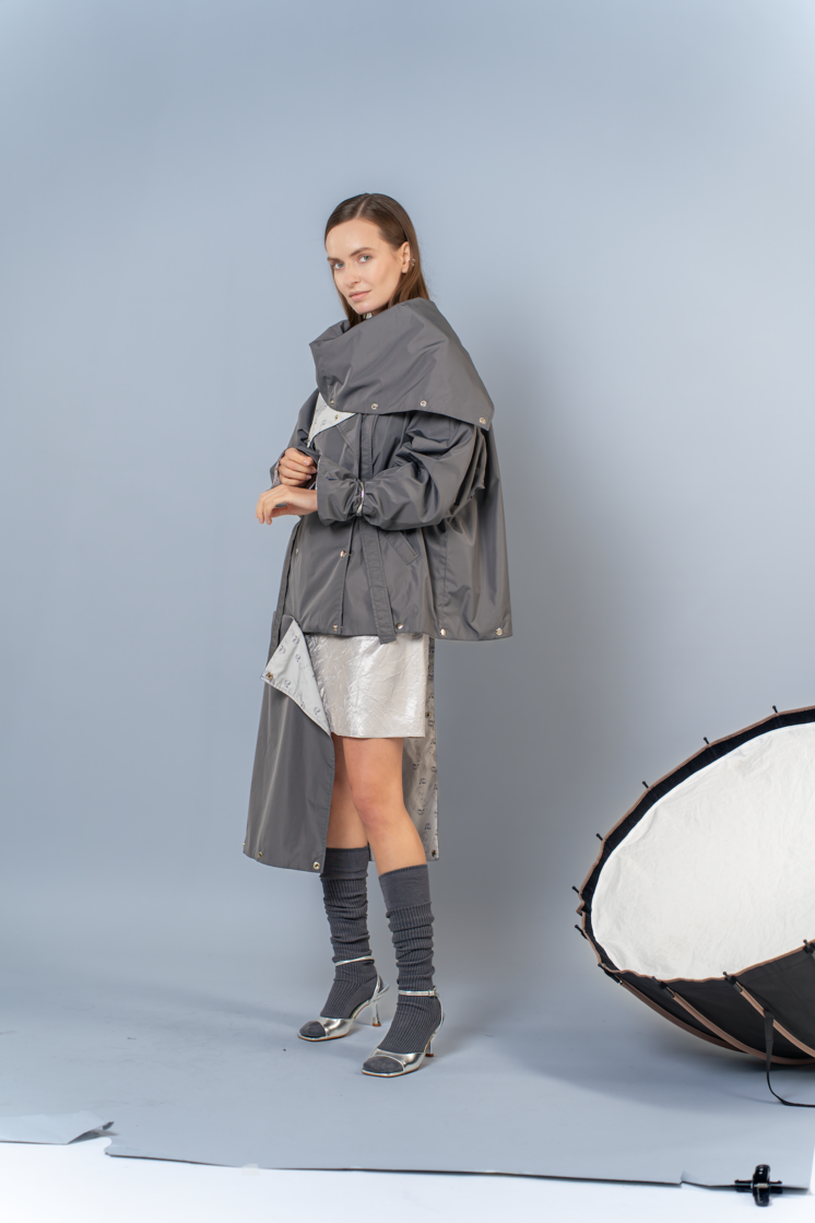 Юбка многослойная серая с объемными элементами