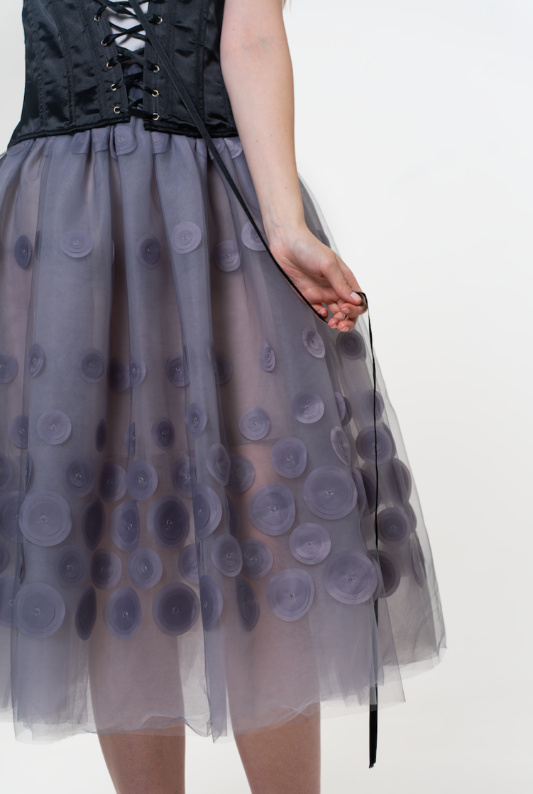Многослойная юбка из фатина ярким орнаментом в виде разноцветного конфетти станет идеальной для создания романтичного образа. Пышный фасон создает акцент на талии, придавая женственность вашему силуэту. Вы легко сможете ее комбинировать с различными верхами, создавая уникальные образы.