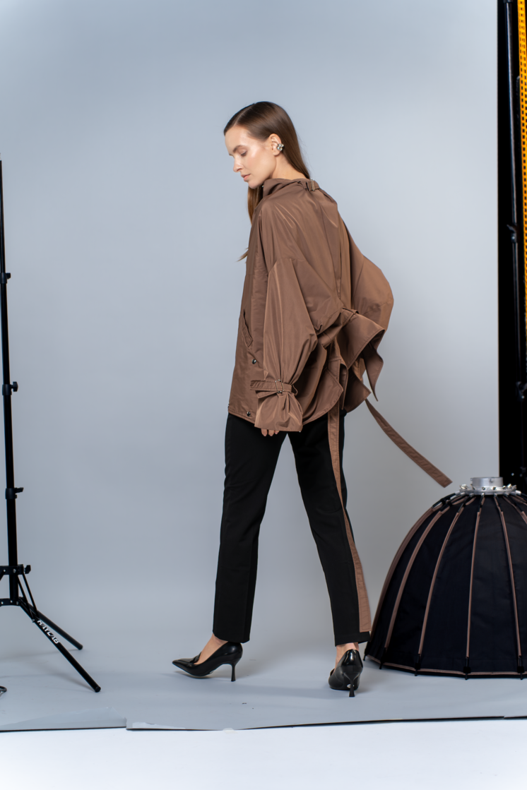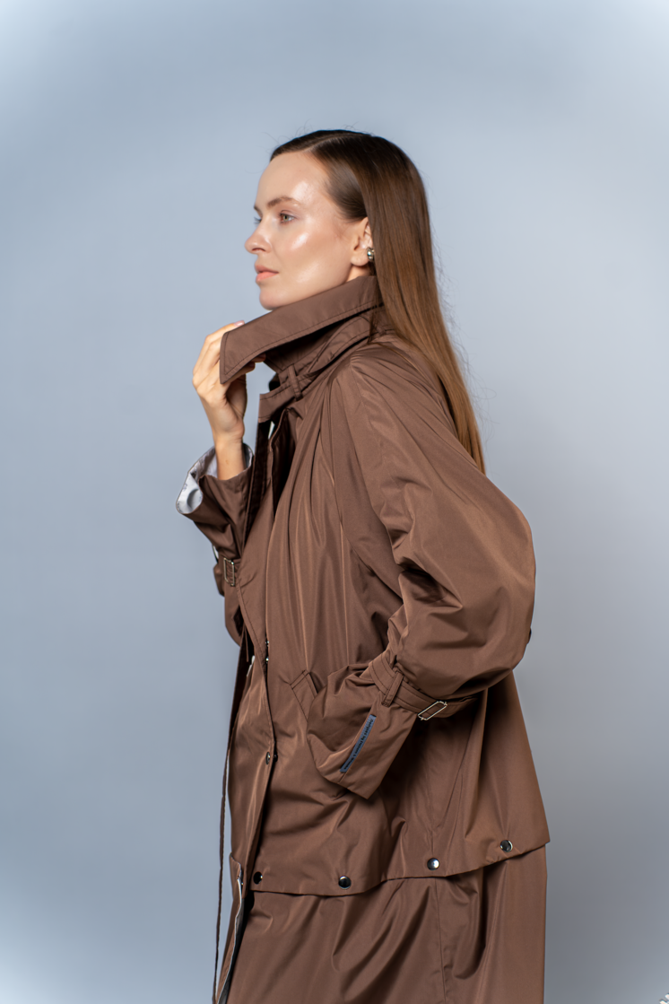 Тренч, представленный в коллекции как ключевое изделие имеет 8 вариаций ношения для создания разных образов.